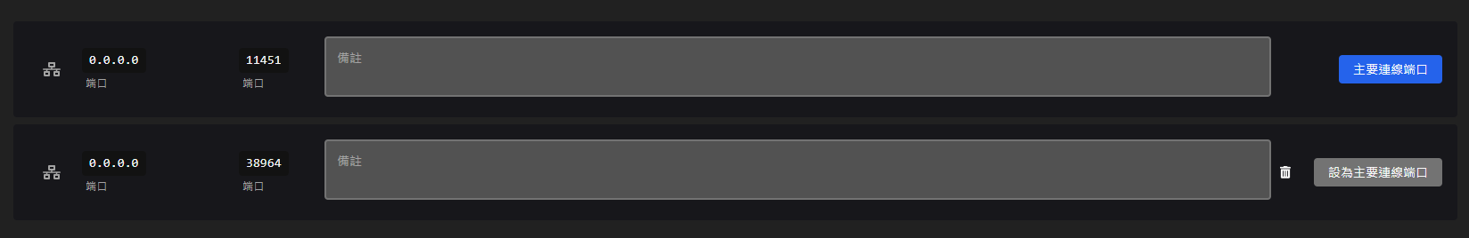 這邊可以看到您伺服器所有端口,可切換主要端口、新增備註