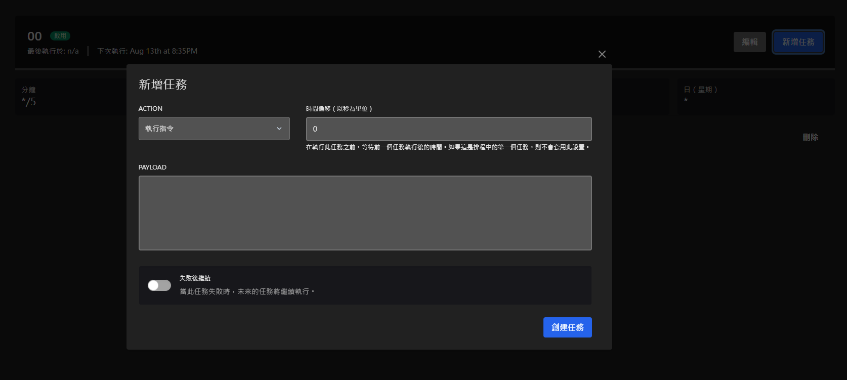 時間偏移 = 需要在原訂排程時間後幾秒執行任務
