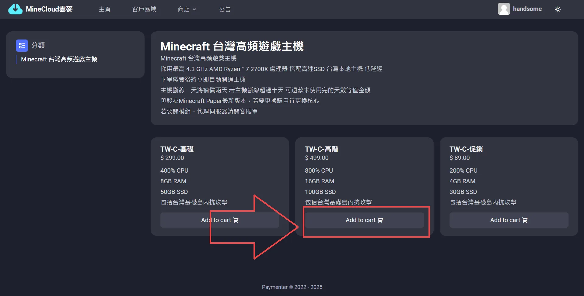 - 選擇需要的方案,這邊以 TW-C-高階 方案作為示範 加入購物車