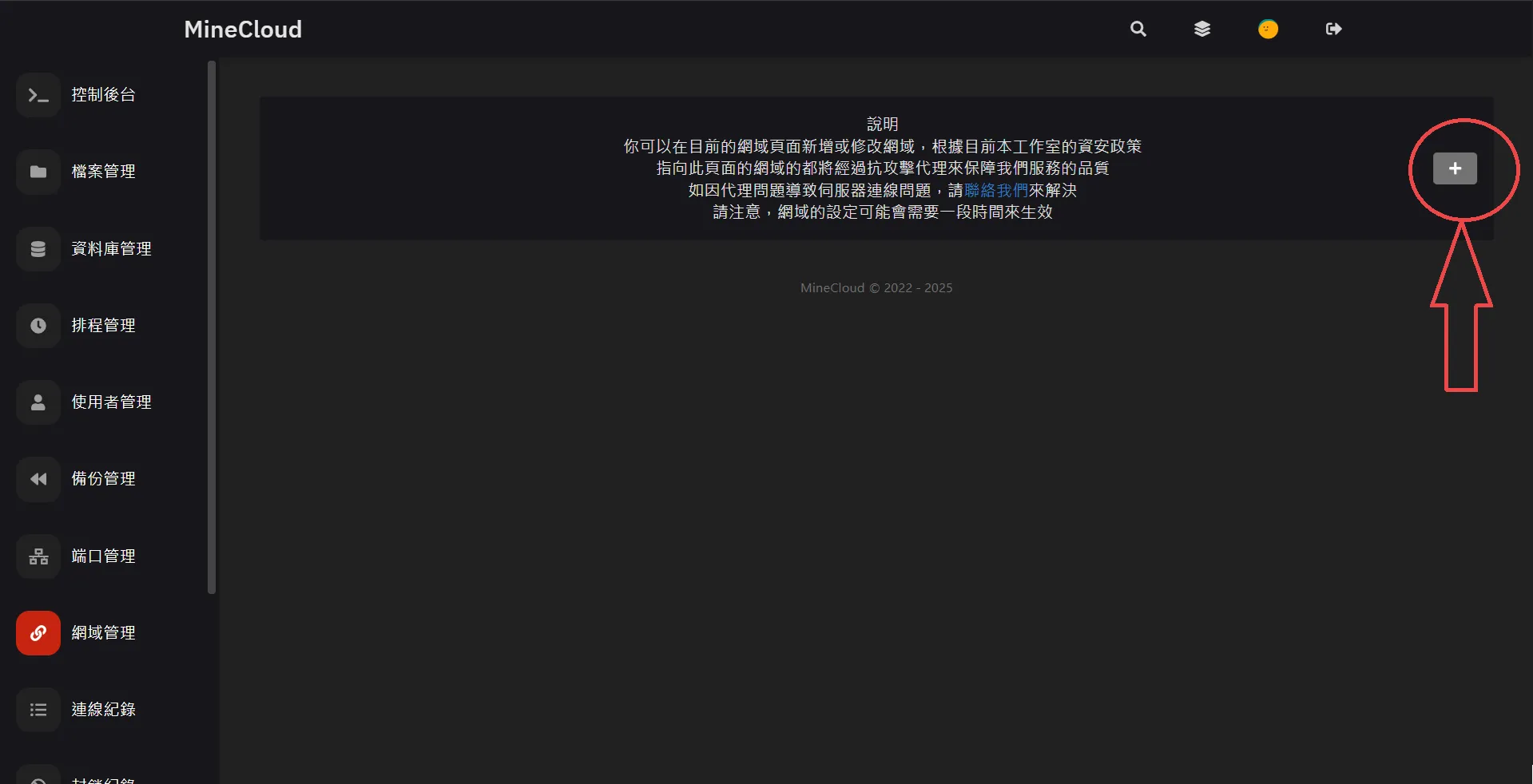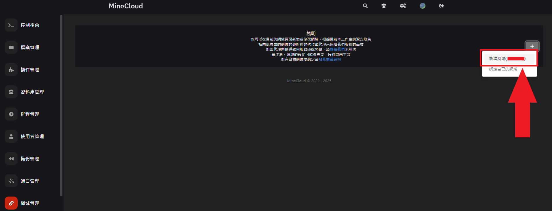 - 點擊 + 按鈕 (選擇第一項 新增網域(.mcstw.top) )