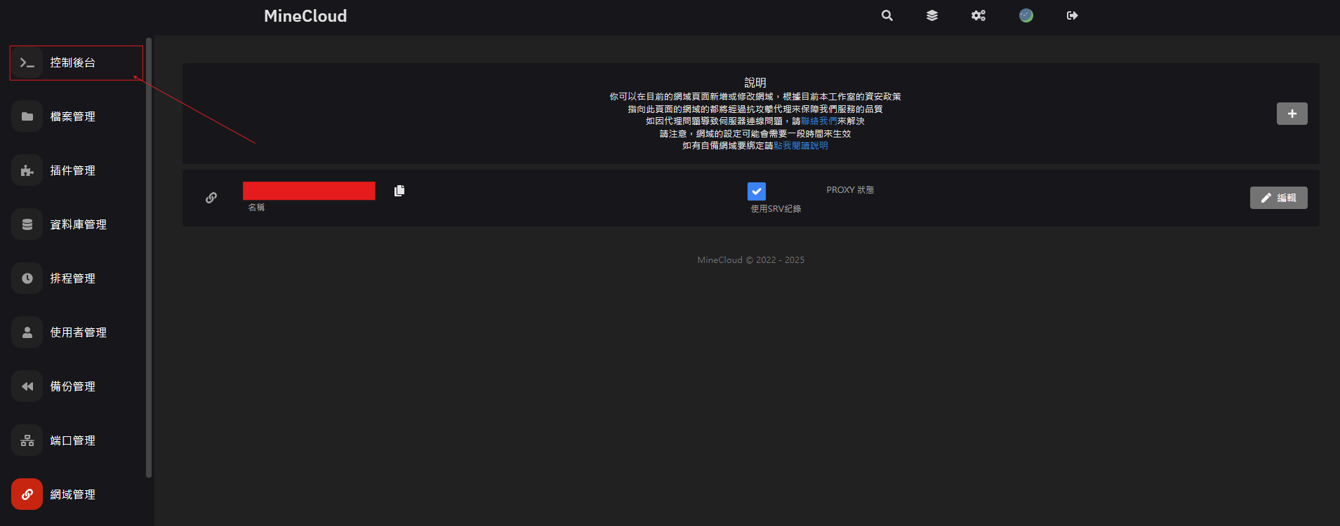 - 回到控制後台